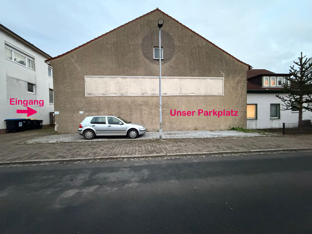 Sollte der Parkplatz belegt sein, bitte die Straße zum Parken benutzen.